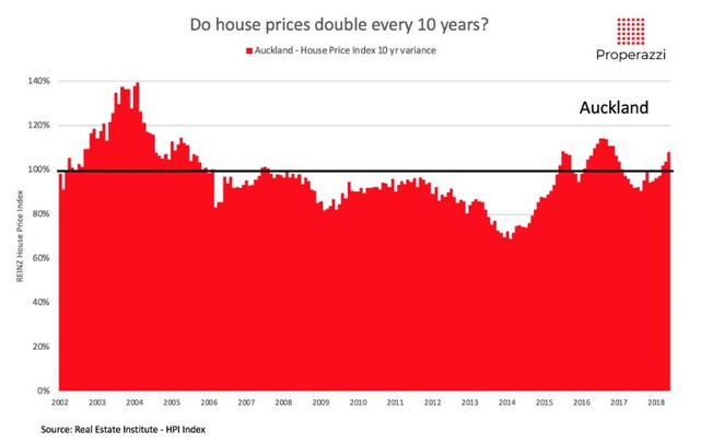 Before diving into the NZ data, it is worth reminding ourselves of the mathematical fact that for a sum of money to double in 10 years requires an annual compound interest factor of just over 7%.