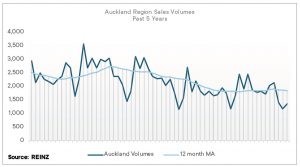 The number of properties sold in Auckland in February fell by 17.9% year-on-year (from 1,654 to 1,358) – the lowest for a non-January month since October 2010. In addition, Auckland saw the median number of days to sell a property increase by 8 days from 49 to 57 – the highest number of days to sell since February 2009.